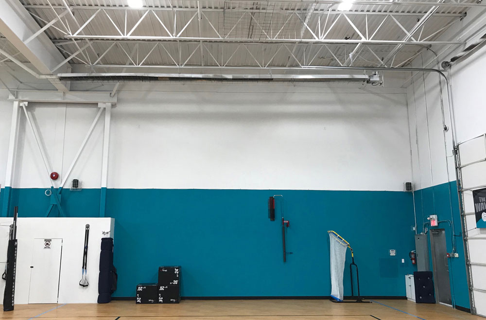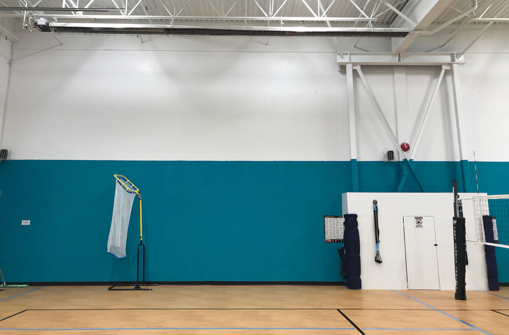 · Ample Court Space – full-sized volleyball court with synthetic cushioned maple flooring; adjustable net system, convertible to 2 full- width training courts